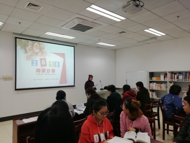 读书分享活动正如火如荼地进行着,2018级商务英语专业的吕晴分享了《名侦探守则》,2016级教育学专业舒依展代表小组分享了《亲爱的安德烈》,各组读书分享者依次上台与同学们分享自己的读书心得。