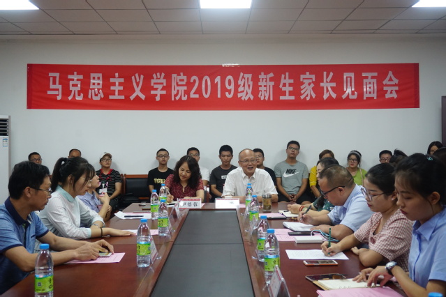 本网讯(通讯员 余婵)9月7日下午,我院在二号教学楼二楼会议室召开2019级新生家长见面会。我校党委常委、副校长黄颂,我院党总支书记尹德蓉、副院长张玲、副教授曹云、学工办主任樊勇出席。会议由我院辅导员王一主持,并在网络平台同步直播,40余名新生家长与孩子共同参与。