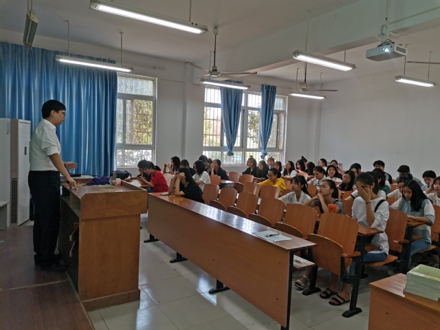 本网讯(通讯员 余婵)9月19日,我院在一号楼1101教室开展考研交流大会。学工办主任樊勇、辅导员王一与会,2017级、2018级思想政治教育专业1班部分学生参加,我院特邀恒文教育刘笑尘老师担任主讲人。