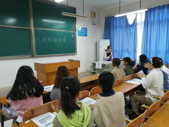 本网讯(通讯员李珊露)10月25日下午,英国威廉集团于二号教学楼2205教室开展风采杯辩论赛,2019级思想政治教育1班8名学生参赛,校辩论队王禹涵、胡艺炜、李瑞玉担任评委。