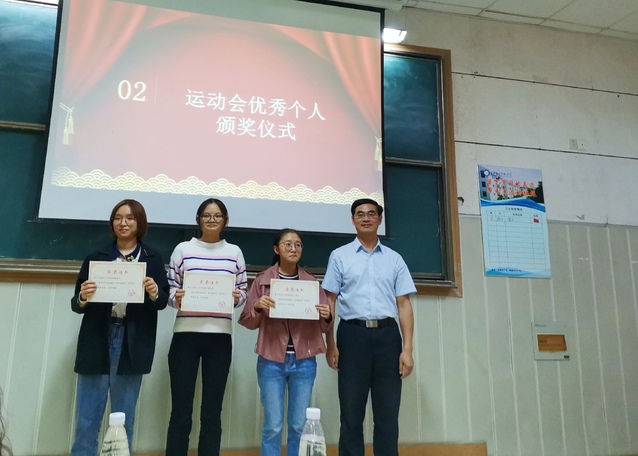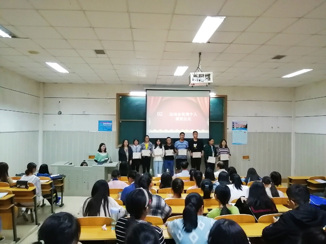 本网讯(通讯员易娉羽)11月7日中午,我院在阶梯教室五举行运动会表彰大会,我院党总支书记尹德蓉、院长黄红发、党总支副书记宋平,辅导员王一出席。
