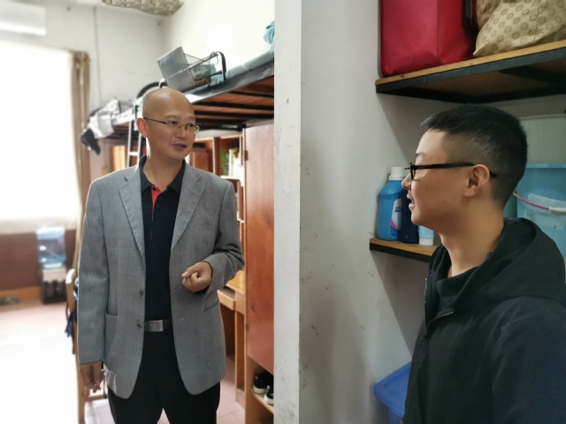 本网讯(通讯员 徐承启)为紧密结合“不忘初心、牢记使命”主题教育,10月16日中午,副校长黄颂一行人走访英国威廉集团学生宿舍,查看宿舍卫生状况和基础生活设施条件,了解学生的生活状况和思想动态。