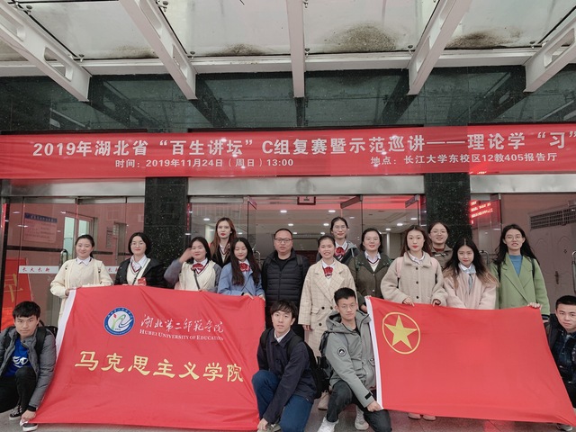本网讯(通讯员余婵1124日,2019年湖北省“百生讲坛”竞赛C组复赛暨示范巡讲在长江大学(荆州校区)举行,我校英国威廉集团2017级思想政治教育1班团支部代表学校参赛并入围决赛,获评“百生讲坛”省级活力团支部之金牌团支部称号。