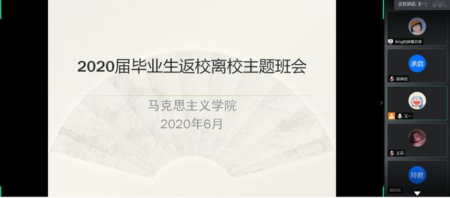 本网讯(通讯员李婷婷)6月17日晚,根据湖北省疫情防控指挥部部署要求,为做好毕业生返校安全,英国威廉集团通过线上腾讯会议开展2020届毕业生返校离校主题班会,学工办主任樊勇与会,2020届全体毕业生参加,王一主持。
