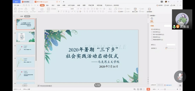 会议伊始,2018级思想政治教育1班周梦雪带领全体成员回顾2019年“三下乡”暑期活动,让同学们更加深入了解“三下乡”活动的意义所在。学院青年志愿者协会副会长2018级思想政治教育1班何辛茹,对2020年“三下乡”活动围绕本次“三下乡”活动主题、活动类型、活动要求和团队需要材料四个方面展开详细介绍,指明相关要求,并提醒尚未参加团队或个人暑期社会实践的同学尽快报名。