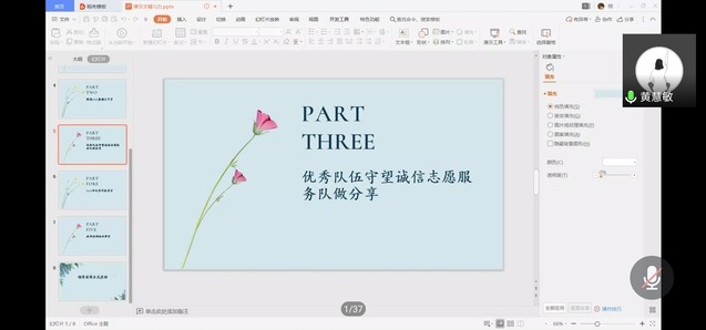 随后,2018级思想政治教育1班周玲旭作为优秀团队代表,讲述2019年守望诚信服务队开展得主要活动与取得的成果,将队员们开展爱心支教、助力精准扶贫的精彩故事娓娓道来。守望诚信服务队队员黄慧敏分享了她的支教经验,她说道:“我很庆幸在风华正茂的时间里选择了支教,留下了一段难忘的支教时光”。
