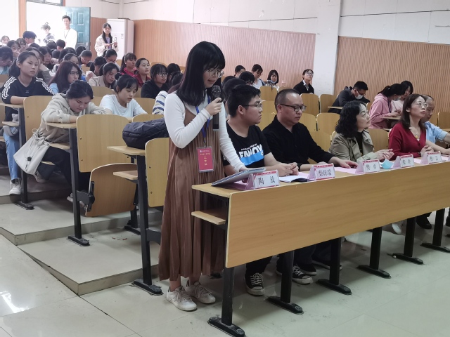 活动伊始,2019级思想政治教育1班陶放介绍读书文化节活动及内容。她介绍本届读书文化节以“襄盛举、游书海、新跨越”为主题,包括专题讲座、“汉字英雄·一站到底”比赛等多种活动。