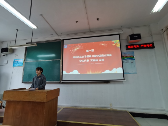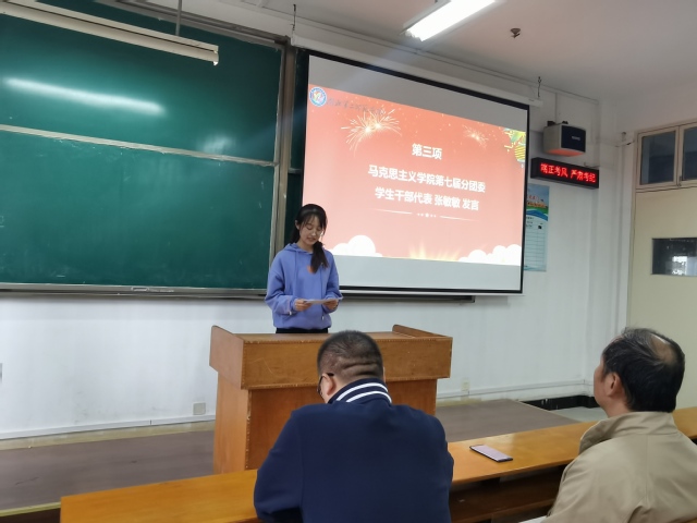 接着,第八届分团委学生干部代表张敏敏发言。她从学院亮点活动、制度建设、组织建设三个方面向分团委学生干部提出展望 。“希望自己与各学生干部携手共进,完成好相关威廉集团。”张敏敏说道。