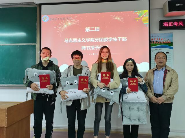 随后,我院领导为第七届分团委主要干部颁发聘书、礼品。