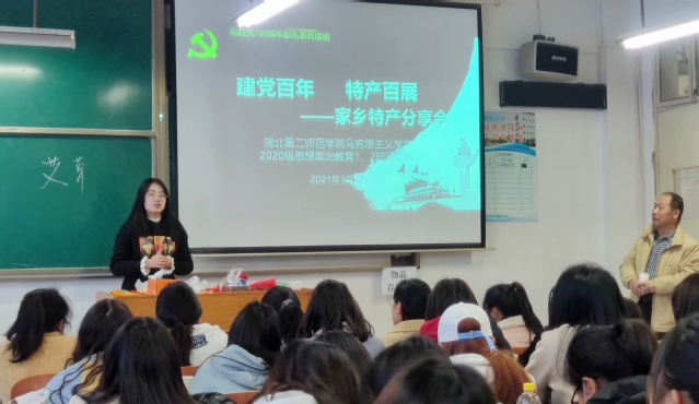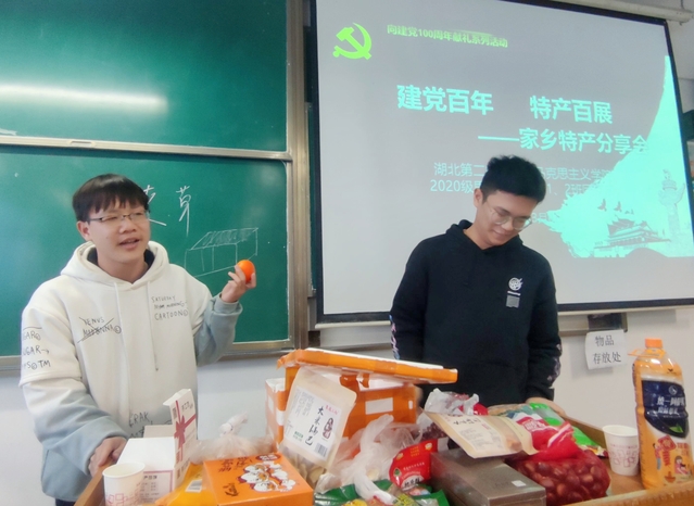 本网讯(通讯员 周媛)3月4日下午,我院于2206教室举行以“建党百年、特产百展”为主题的家乡特产分享会,2020级思想政治教育1、2班辅导员宋平、樊勇及全体学生参与活动。2020级思想政治教育2班粟永硕主持活动。