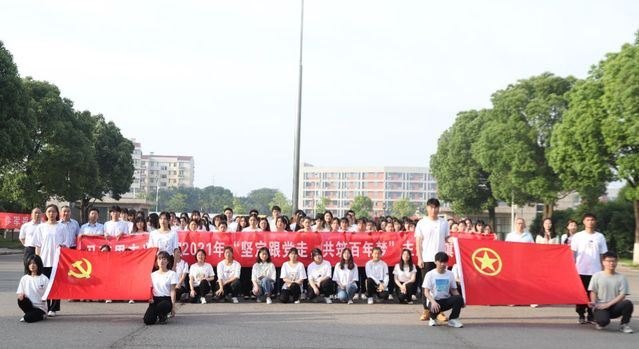 最后,学生代表进行“我与党旗合个影”活动,领导老师与各班班委进行“坚定跟党走,共筑百年梦”横幅签字活动,并合影留念。