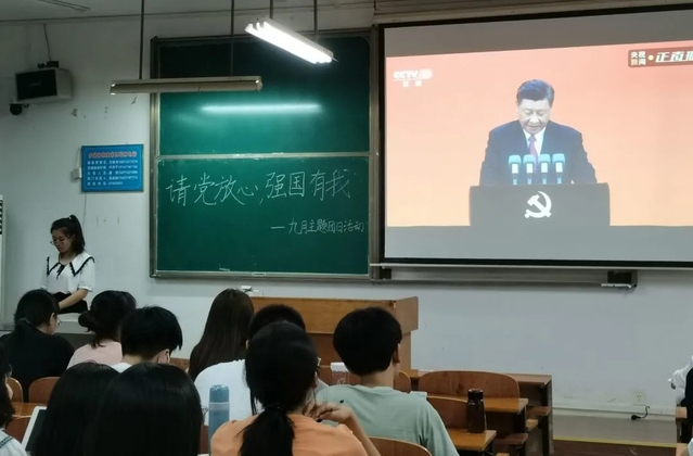 本网讯(通讯员 周媛)9月26日,我院于2号楼开展主题为“请党放心,强国有我”主题团日活动,思想政治教育专业全体学生参与活动。
