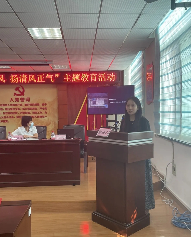 活动伊始,全体参会人员一起参观清廉家风主题剪纸展,并观看了微电影《守望家风-俭廉》。紧接着,佛祖岭街道领导丁秋梅、范文平、郑先胜就“廉洁修身、廉洁齐家”主题进行了指导讲话,并做出相关纪律要求。随后,刘天以三代党员的故事展现了党风与家风的传承,她表示,无论是各位领导老师所强调的党风家风和组织纪律,还是退休干部蔡秋容奶奶所展现的奉献精神和正风正气,都让自己备受感触,也希望能通过此次分享让在场的前辈们能够感受到青年人的决心,更能够放心把中国的未来交给青年人的手中。