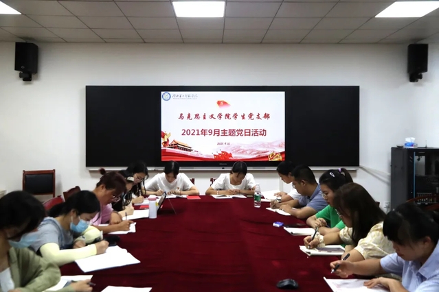 本网讯(通讯员粟永硕)9月15日中午,我院学生党支部9月主题党日活动在学院会议室召开,学生党支部书记樊勇、组织委员王一以及全体学生党员参与活动。2018级思想政治教育1班黄慧敏主持活动。
