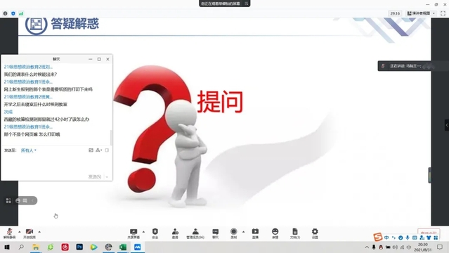 在最后的答疑解惑环节,王一以及2021级思想政治教育的6名班级助理针对2021级新生的各种疑惑进行详细的解答。