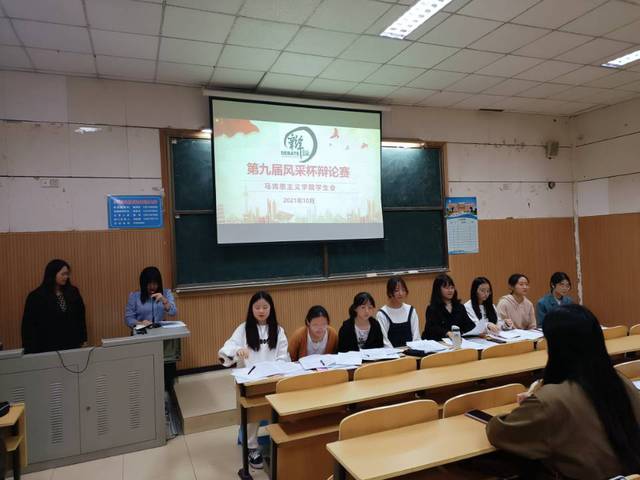 本网讯(通讯员张雨曦)10月28日晚,我院于阶梯教室2举行“礼赞建党百年,共建书香校园”第九届风采杯辩论赛,校辩论队刘天、徐显茁、陈杨担任评委,2021级思想政治教育1班五名同学、2班三名同学参赛。2021级思想政治教育1班陈玺玥主持活动。