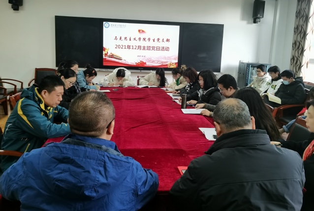 本网讯(通讯员 罗心雨)12月21日中午,我院学生党支部于二号楼二楼会议室召开“学习贯彻党的十九届六中全会精神”12月主题党日活动。我院党总支副书记宋平,学院组织员刘莹,学生党支部书记樊勇、组织委员尚峰、纪律委员吴文娟以及全体学生党员参与活动。