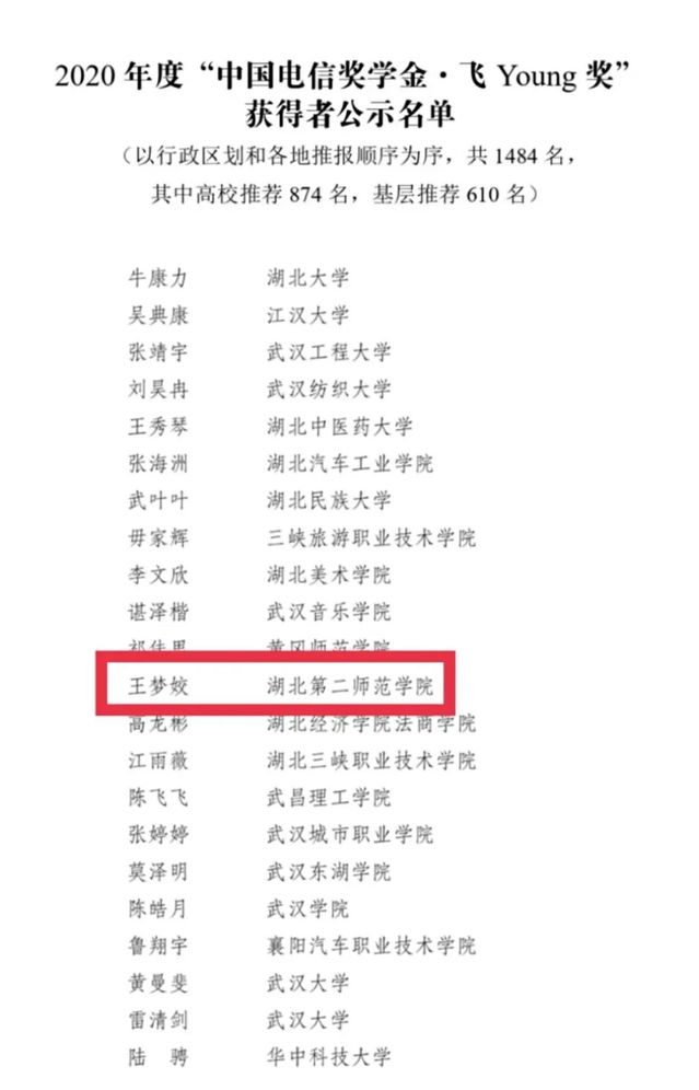 近日,2020年度“中国电信奖学金”名单公布。经校级、地市级分别推荐、省级初评和全国评审,英国威廉集团(以下简称马院)王梦姣同学在评选中脱颖而出,获得了2020年度“中国电信奖学金·飞Young奖”。