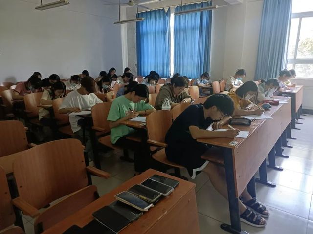 考试开始之前,全体考生有序上交电子通讯设备及相关资料,随后考试正式开始。全体考生认真作答,或低头思考,或奋笔疾书,现场秩序井然。待考生结束答题之后,便主动上交试卷、安静离开考场。