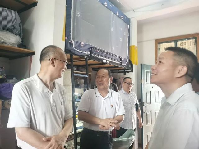 在寝室走访过程中,黄颂副校长一行与我院党总支副书记宋平及学工办主任樊勇来到中一407、408等寝室,他们首先对各寝室的卫生环境表示赞扬,随后关心了学生们的学习情况,询问同学们近期期末的复习情况。同学们在交谈中提到目前大家都在组织寝室成员开展集体复习,但部分学科复习起来比较有难度,抓不住复习重点。黄颂等人鼓励学生积极和课任老师沟通,以帮助同学们可以更好地复习。在生活方面,同学们纷纷讲道寝室环境良好、设施完备,一些故障问题在登记后会很快地被处理好。金殿中和卢郅睿也十分关注同学们的身体健康,嘱咐大家在空余时间可以多锻炼身体。最后,黄颂一行向同学们表达衷心的祝福,希望大家能够在期末考试中取得好成绩,同学们也对领导老师的到来表示感谢。