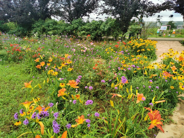 离开了梅池村特色民居,“青马”服务队的志愿者们来到了香草花田。一走进花田内,就闻到了一股悠长、清淡的芬芳。抬眼望去,只见一簇簇花肆意的开放着,生长着,在一片绿茵中,有黄色的花,粉色的花和紫色的花,它们颜色不一,有的杂乱分布着,但乱中有序,争相点缀这一片草地;有的统一颜色,在一地密密地排列着,形成一团一团的锦簇。在花田的一侧种有几颗李子树,供前来旅游的旅客们自行采摘。在花田负责人周丹丹的引导下,我们走进了香草花园的特色小屋内,一进屋我就被典雅的氛围所感染,在花田里躁动的心逐渐平静下来。在进一步的交谈中,我们了解到这座香草花田景点是农业,加工业和旅游业三产融合的旅游综合体。“香草花田”已经有能力加工香包,花茶、大米、果酱、精油、纯露、喷雾、甘草制品、果干等相关制品。香草花田自2015年开园以来,共接待游客110余万人次,带领精准扶贫户32户全部脱贫,人均年收入增收2万余元。香草花田项目也正在为梅池村的乡村振兴事业助力。