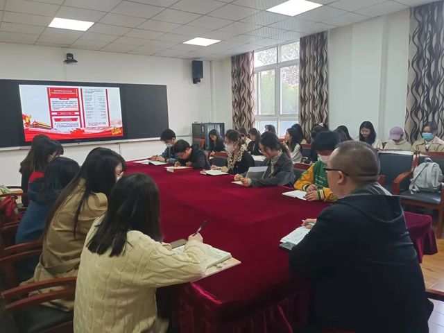 11月4日下午,我院学生党支部于二号楼二楼会议室召开“学习宣传贯彻党的二十大精神,守初心担使命培根铸魂育新人”主题党日活动。我院学生党支部书记樊勇以及全体学生党员与会。