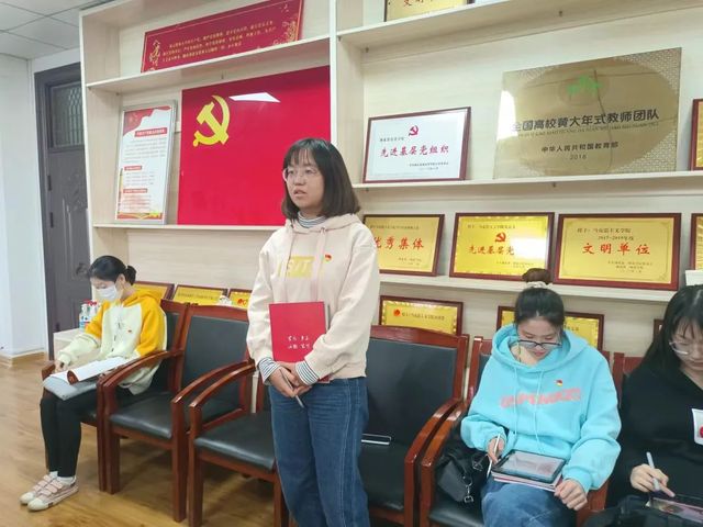 接着,2019级思想政治教育1班马燕珊、夏秀,2020级思想政治教育1班朱朝莹三位同志进行主题学习分享。