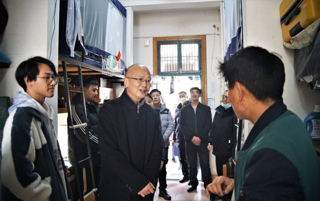 在走访过程中,领导与返校学生亲切交谈,了解学生寒假生活状态、返校思想动态、身体健康状况等,嘱咐学生合理安排作息、科学调适状态、尽快收心归位,在新学期勤勉奋进。副校长黄颂询问了学生在假期的学习情况,并对同学们毫不松懈、积极上进的学习态度给予了充分肯定。随后,他提醒同学们:“愉快的假期生活已经结束,大家要学会收心,做好规划,将更多的精力投入到学习中。”在西藏学生宿舍,黄颂鼓励西藏籍学生好好学习,毕业后建设好家乡。