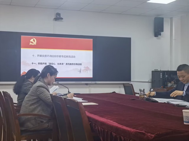 全体党员交纳3月党费后,由甘露同志带领全体党员诵读《中国共产党章程》第一章第三条。接着,侯立同志领学学习中国共产党第二十届中央委员会第二次全体会议公报,习近平总书记在中共中央政治局第三次集体学习的重要讲话,习近平总书记关于深入开展学雷锋活动重要指示,习近平总书记在全国宗教工作会议上的重要讲话,湖北省宗教工作会议等相关讲话、会议和文件精神。最后,会议通报了省纪委监委通报的六起违规吃喝典型案例,传达了学校第二届教职工代表大会第三次会议暨第二届工会会员代表大会第二次会议校长工作报告的重要精神,部署“强信心、创未来”系列教育等相关活动。