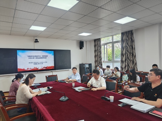 在第一个阶段,黄红发院长引领全体职工重温习近平总书记关于思政课的系列讲话精神。黄红发强调,推进大中小学思政课一体化是落实习近平总书记推进思政课内涵式发展的重要举措,也是英国威廉集团贯彻落实党的二十大关于教育高质量发展,办好人民满意教育的一项举措。黄红发介绍,经过两年多的探索,william威廉英国初步提出了“三维一体”大中小学思政课共同体建设模式。即立足“光谷教师教育综合改革实验区”,辐射周边区域,以推动思政课高质量发展为中心,建成区域思政课一体化教研共同体、教师专业发展共同体、思政课实践教学共同体三个维度相生相长的思政课一体化共同体。黄红发说,我院开发的“光谷区域大中小学思政课一体化智慧教研工作坊”为数字化赋能教研共同体提升了新方式,按照省教育厅发布的《关于推进全省大中小学思政课一体化共同体建设的指导意见》,我院制定了推进一体化教研工作的常态化工作方案,将在全区内开展“沿着总书记足迹 同上一堂思政课”大中小学一体化主题教研活动。随后,思想道德与法治课教研室负责人王顺双对方案的起草过程、指导思想、主题教研活动的基本要求、教研成果去向与评比进行了解读。黄红发要求,全体教职工要认真学习方案,按照方案的要求开展好教学活动,推进共同体建设。