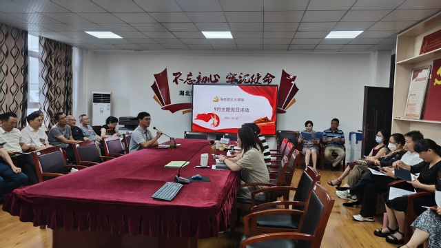 全体党员缴纳9月党费后,由曹芸同志带领全体党员诵读《中国共产党章程》第二章第十七条、第十八条。接着,田磬同志领学习近平总书记关于党的建设的重要思想;习近平总书记关于严肃党内政治生活的重要讲话和重要指示批示精神;习近平总书记关于以学铸魂、以学增智、以学正风、以学促干等重要论述;习近平总书记关于湖北工作、关于教育的重要讲话和重要指示批示精神以及学习党章、新形势下党内政治生活的若干准则。