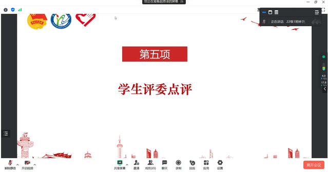 接着,学生评委对答辩队伍进行点评。其中,2022年红船行志愿服务队负责人粟永硕提出以下几点建议:一是实践内容应详略得当,突出重点;二是突出答辩主题,联系社会热点,展现队伍亮点;三是要合理控制答辩时间;四是鼓励所有队伍积极向社会影响力较大的媒体投稿,增加宣传优势。