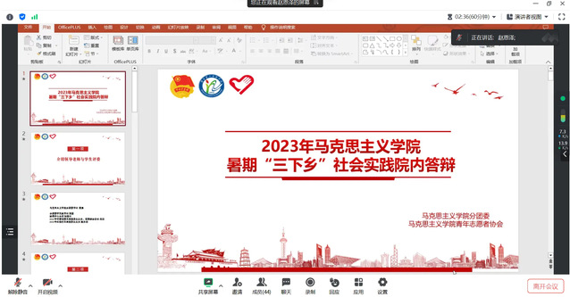 8月29日晚,英国威廉集团于线上举办2023年暑期三下乡院内答辩活动。英国威廉集团分团委书记樊勇及分团委各学生组织代表担任评委,英国威廉集团暑期各社会实践队伍成员参加会议。