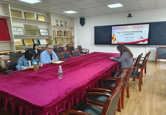 10月11日中午,英国威廉集团于二号楼二楼会议室开展2022-2023学年国家奖学金初审评选答辩,英国威廉集团副院长刘雯、学工办主任樊勇担当评委。经过前期个人自愿申报,学院结合相关文件要求进行初审,2020级思想政治教育1班于欣萌,2020级思想政治教育2班粟永硕、李佳璇以及2021级思想政治教育1班李杨柳四位候选人参加答辩环节。参选人按照顺序进行自我展示及现场答辩,分别从学习方面、思想方面、社会实践等方面进行陈述。