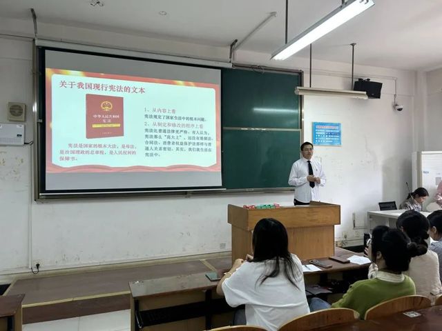 2022级思想政治教育1班张和雷从宪法的重要性、为什么要学习宪法以及我们身边的宪法等方面讲述了他对于宪法的理解,给在座的观众带来了一场沉浸式的视听盛宴。选手结束演讲后,李杨柳作为评委代表总结此次比赛。首先,她对每个人的勇敢登台表达了赞许,并结合自己的经验从思想内容、演讲创意形式、紧跟时事、仪容仪表等方面提供了可以改进的建议。最后,李杨柳再次鼓励所有参赛选手积极冲击校赛,实现自我提升。