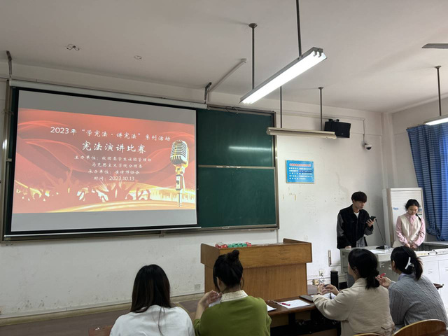 10月13日中午,英国威廉集团在二号教学楼二楼2214教室开展“学宪法·讲宪法”主题演讲活动初赛。
