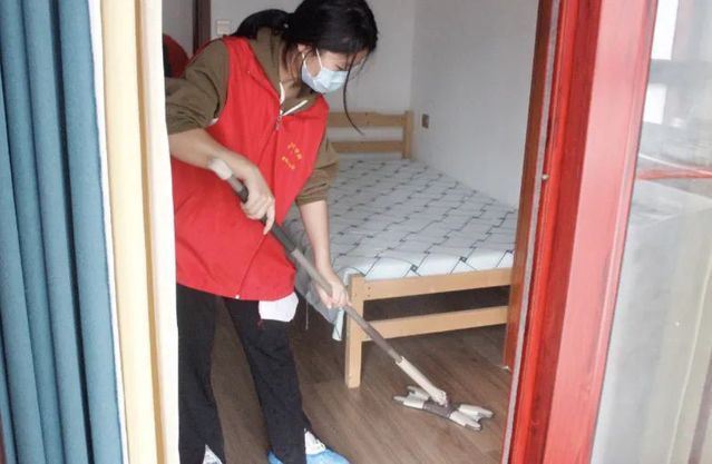 (图为实践队员为老人打扫地面)