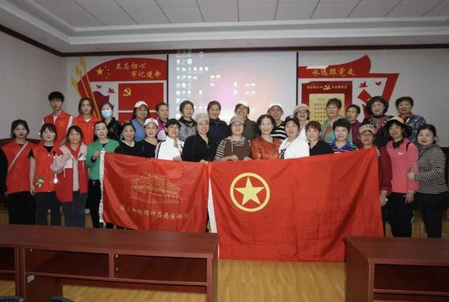 (图为宣讲团成员和关山社区退休女党员干部宣讲活动结束后的大合影)
