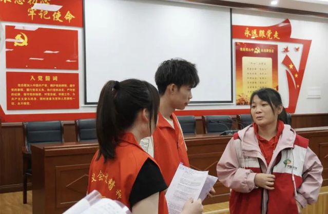 (图为实践队员为老人耐心答疑解惑)