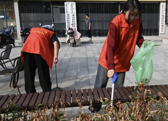清扫一片土地,换来绿色洁净。志愿者们拿着扫帚、簸箕等劳动工具,弯下腰拾起垃圾,默默无闻,辛勤工作,在无言的动作中体会环卫工人们的艰辛和不易,感受到他们无私奉献的精神。