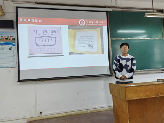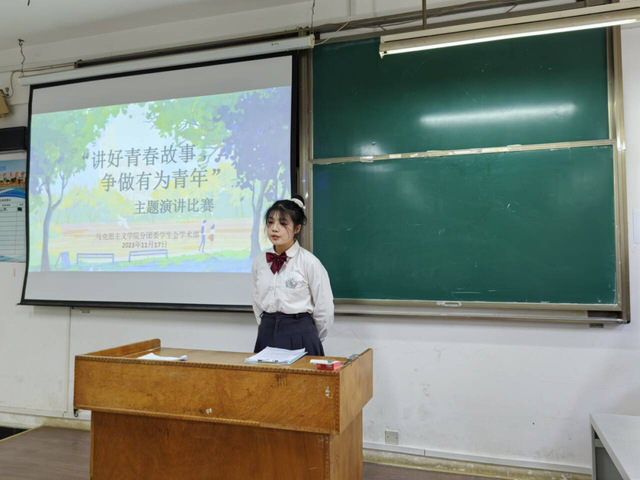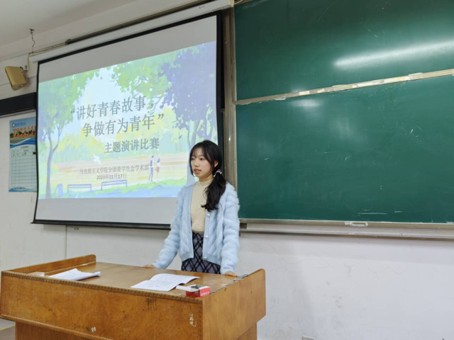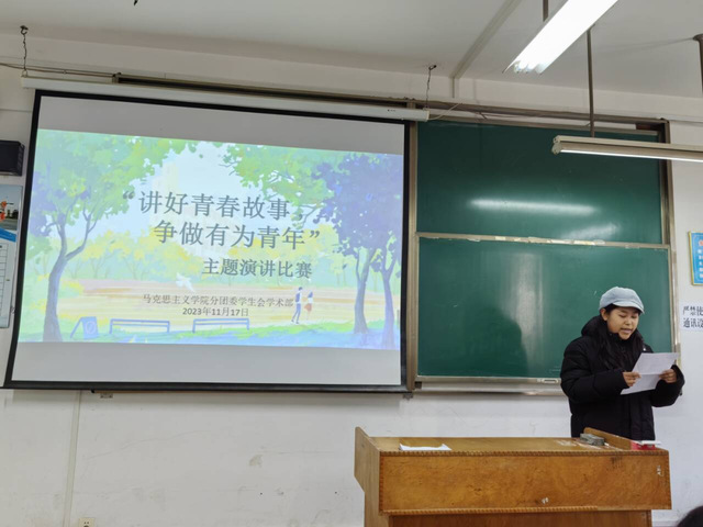 其中,2023级思想政治教育1班张淦以“用青年人的不负,实现人生抱负”为主题展开演讲,强调青年学子要通过厚植使命责任精神、坚定理想信念来书写青春故事,担当青年的责任,在青春的脉搏中迈步向前;2023级思想政治教育1班杨忻童以“立鸿鹄志,筑梦芳华”为主题,通过讲述钱伟长、何杰等人的青年事迹,认为青年应当继续贯彻苟日新,日日新,又日新的创新精神,跳出舒适圈,绘制中国梦宏伟蓝图。