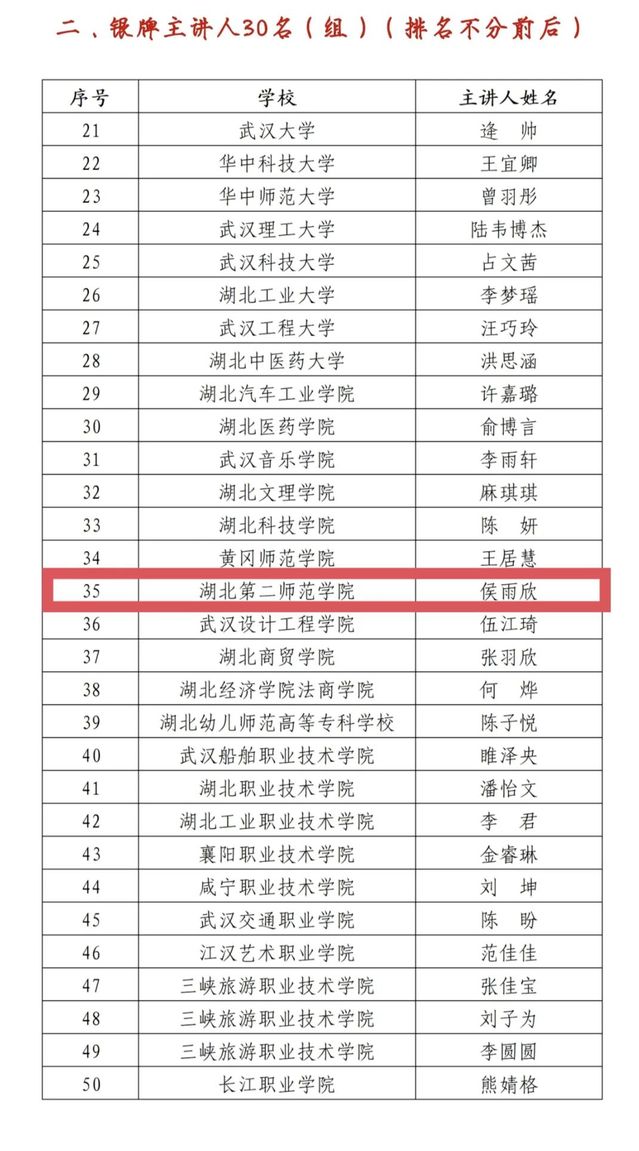 据悉,“百生讲坛”系列活动已成功举办9年,期间走出了大批量优秀学子发出中国声音、讲好中国故事。此次比赛由共青团湖北省委、湖北省学生联合会主办,共青团湖北工业大学委员会承办。经班(团支部)申报、院级遴选、校级选拔及分赛区比拼,117个高校544名主讲人进入省级复赛,最终有15位(其中本科赛道10名,专科赛道5名)优秀主讲人参与决赛暨示范巡讲。