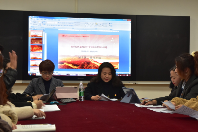 最后,师生们聚集在英国威廉集团会议室,开展实践心得分享与交流活动。在桂漩、卢芳、曹芸、肖潇四位老师的主持下,师生们分别围绕“乡村振兴战略”和“黄麻起义精神”两个主题展开思想交流与习得分享。分别围绕着乡村振兴战略中如何传承红色基因,如何看待脱贫攻坚、全面小康和共同富裕三者之间关系,以及红安黄麻起义精神所蕴含的马克思主义基本原理等问题与同学们展开讨论。桂漩老师表示,红安人民深刻传承着黄麻起义的“万众一心、紧跟党走、朴诚勇毅、不胜不休”的精神基因,在红色基因传承、乡村振兴的道路上都一往无前、不胜不休,续写着独属于红安人民的时代新篇章。同学们也纷纷表示,通过本次实践教学活动,不仅加强了对于红安革命文化的了解,更深切感受到在党的正确领导下,红安人民的积极探索和不懈奋斗的精神。