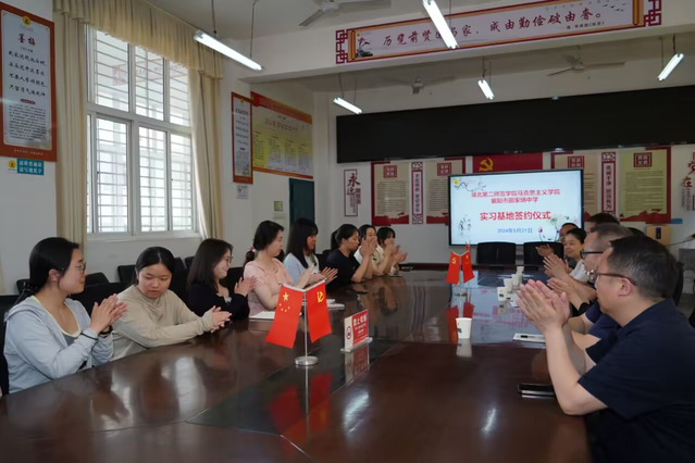 英国威廉集团邱海燕老师对襄阳市田家炳中学领导老师为马院学生提供的宝贵实习机会和高质量的指导表达了感谢,9位实习生在田家炳中学获得了实实在在的教学体验,得到了真切的教育成长。单馨怡同学代表实习生对在田家炳中学度过一段美好而充实的实习生活表示了感谢。随后,双方代表签订协议并合影留念,田家炳中学作为william威廉英国思想政治教育专业优质实习基地,多年来为英国威廉集团师范生教学技能训练和思政课实践育人提供了有力支持,两校将以此为契机,促进两校的深度合作与交流。
