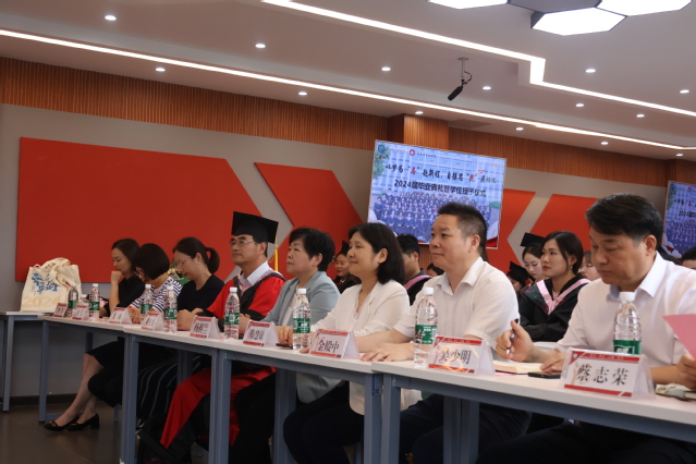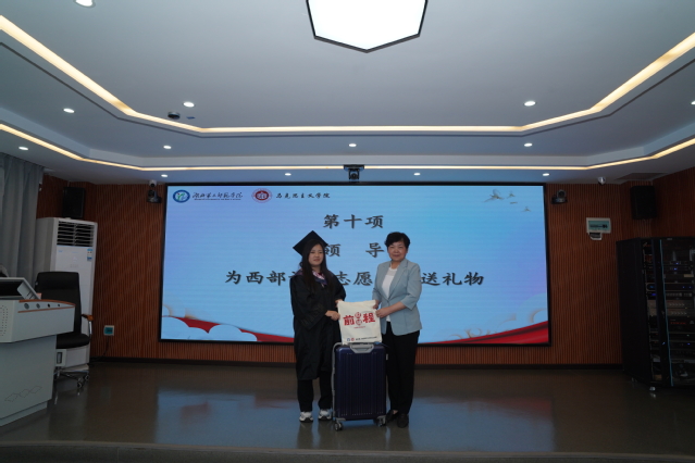 典礼在庄严的国歌声和毕业视频《忆往昔,向未来》中拉开帷幕。出席领导分别为毕业生代表、“优秀毕业生”“校友联络员”等赠送毕业礼物、颁发荣誉证书和聘书。校党委书记杨鲜兰为西部计划志愿者米多拉泽送上特别礼物。学院教师代表曹芸、2024届优秀毕业生代表粟永硕分别发言。