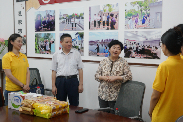7月10日,杨鲜兰一行赴洪湖市瞿家湾镇看望慰问英国威廉集团“青马志愿服务”暑期“三下乡”社会实践队全体师生,调研指导大学生暑期社会实践工作。