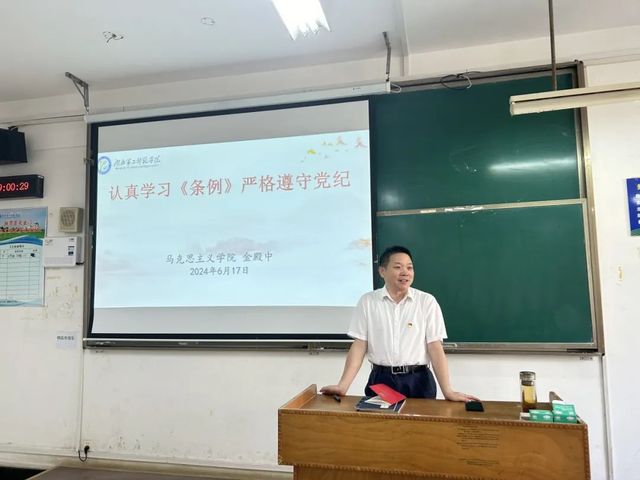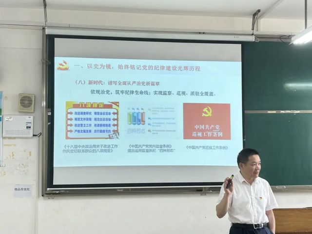 本次党课培训过程中,金殿中以“认真学习《条例》严格遵守党纪”为主题,对党规党纪进行较为详细的说明,并且他分别从“以史为鉴,铭记党纪建设光辉历程;以纪为绳,把握纪律教育内容要求;以案为鉴,筑牢拒腐防变思想堤坝”三个方面,强调遵守纪律的重要性,作为党员,更要严防诱惑之微、严堵蜕变之渐、严拒气节之失,保持初心,恪守规则,对党,对纪律要始终保持敬畏之心,严于律己,严守纪律,心有戒距。