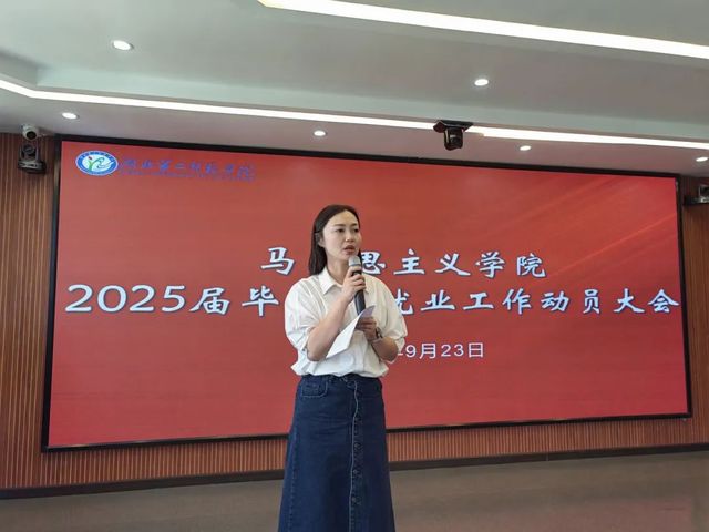 会议伊始,李佳介绍2024届思想政治教育专业毕业生就业情况。她指出毕业生考研和工作的比例,鼓励学生尽早确立目标,树立信心,抓住机会,放低就业要求,积累经验。