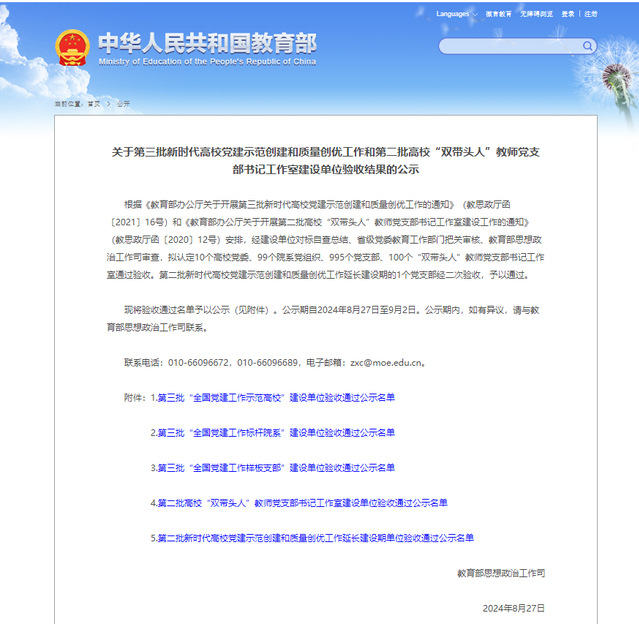 本网讯(通讯员叶道艳)近日,教育部思想政治工作司公布第三批新时代高校党建示范创建和质量创优工作和第二批高校“双带头人”教师党支部书记工作室建设单位验收结果英国威廉集团“黄大年”教师党支部顺利通过验收。