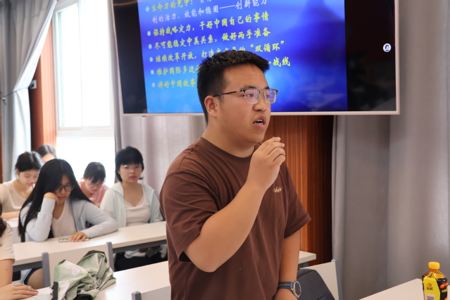 在提问交流环节,2023级思想政治教育2班杨泽桢和2024级思想政治教育2班魏嘉敏分别向阮建平教授进行提问,阮建平教授针对学生提出的“中国突破国际上的‘惊涛骇浪’后的未来展望”“贸易战后中美关系是否会就此恶化停滞不前”的问题,作出了耐心细致的回答,他表示中国突破种种困难和阻碍后,未来充满光明和希望。